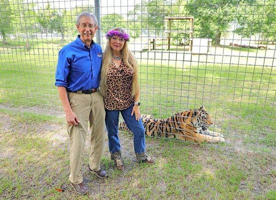 Howard and Carole Baskin beside Jasmine Tiger